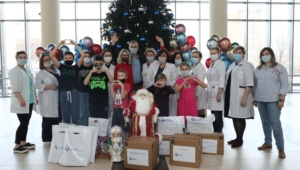 Основным объектом поздравлений традиционно стала Морозовская больница. Самый большой наш новогодний десант во главе с директором фонда Дмитрием Акимовым высадился именно. А помогали ему Владислав Хасиков - самый лучший Дед Мороз, Люба Дорошенко - наш координатор и пара десятков волонтеров фонда. С тестированием и медицинским осмотром волонтеров особых проблем не возникло - главный врач на несколько дней выделил в наше распоряжение специальный изолированный бокс, где всех, кто планировал принять участие в новогодних мероприятиях, осмотрел врач, медсестры произвели забор биоматериала, а в лаборатории больницы провели все необходимые тесты. А в дни поздравлений всех волонтеров обеспечили средствами индивидуальной защиты. Все удалось организовать на самом высоком уровне и в итоге ни один ребенок и ни один волонтер ничем не заболел, и все были довольны.